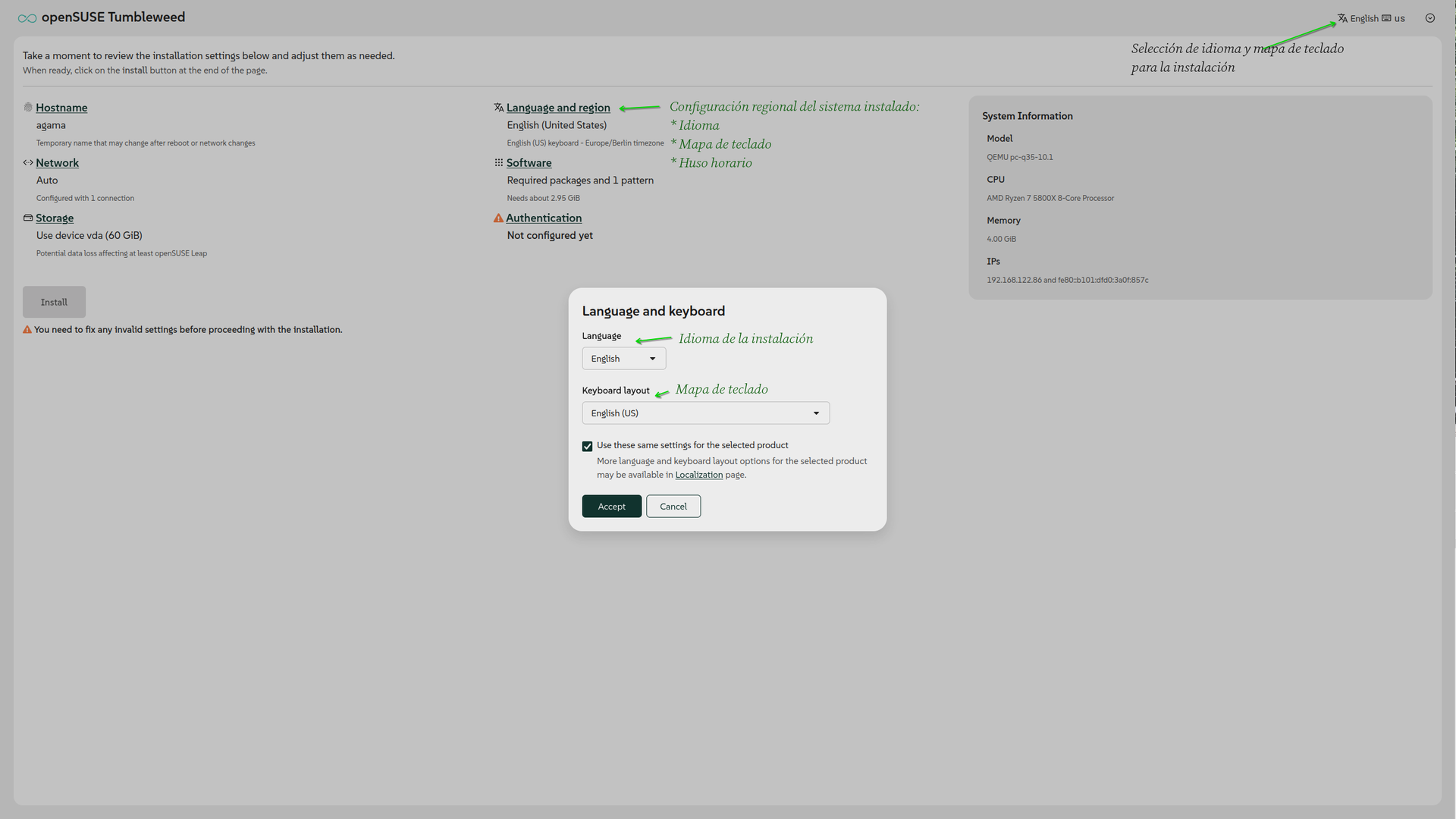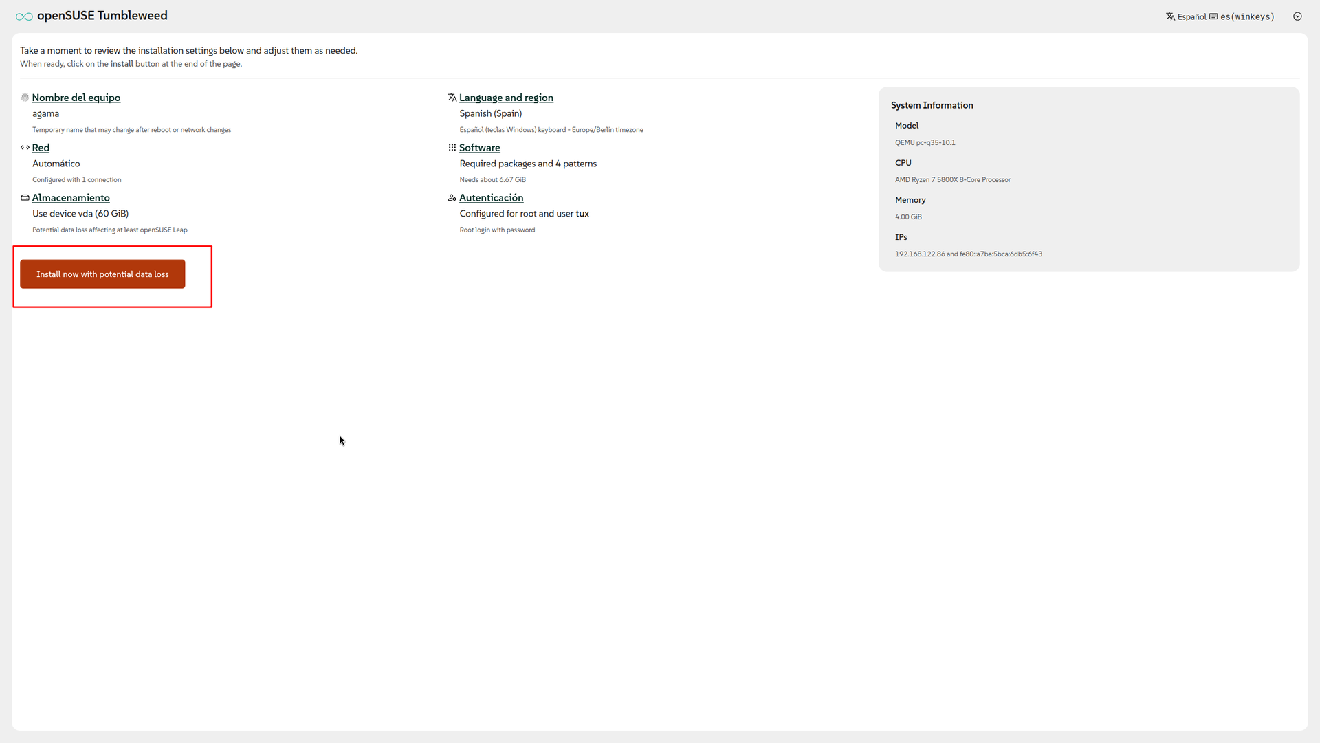 Instalación de Slowroll/Tumbleweed con Agama