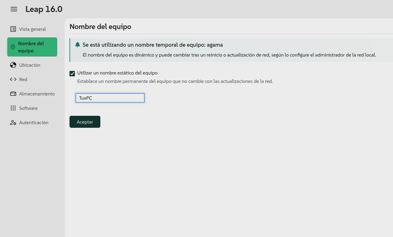 Pero en una red es muy útil que una máquina se identifique con un nombre, por lo que es habitual ofrecer una forma de cambiarlo. Las distribuciones Linux lo hacen en la propia instalación, normalmente como parte de la configuración de red.